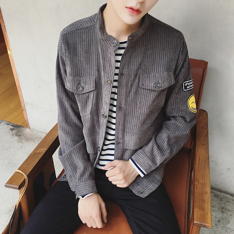 / 原創日系復古笑臉燈芯絨潮男夾克韓版港風文藝外套