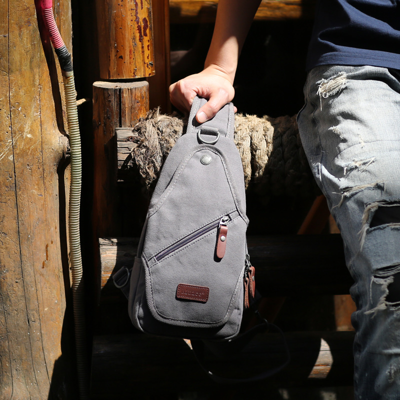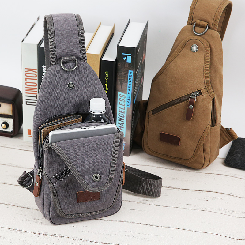 新款男士胸包帆布運動斜挎包包復古休閑單肩包學生小背包潮