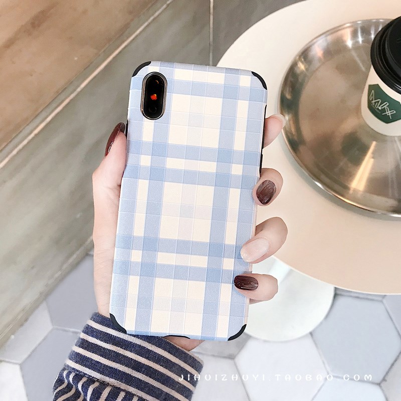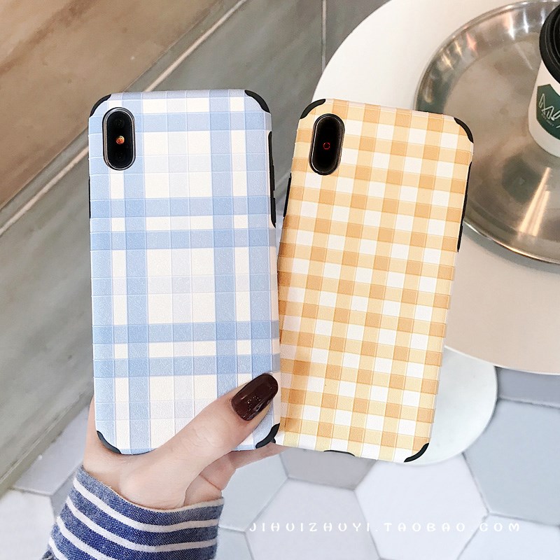 簡約日韓格子iPhone6sPlus手機殼8P全包防摔蘋果XS/7/8軟殼個性女