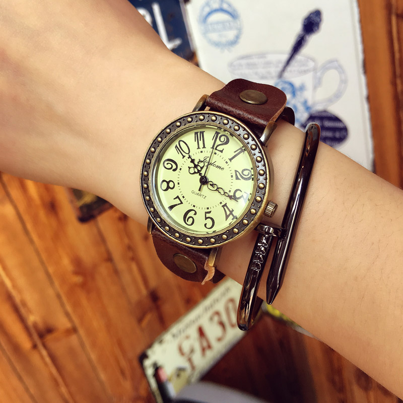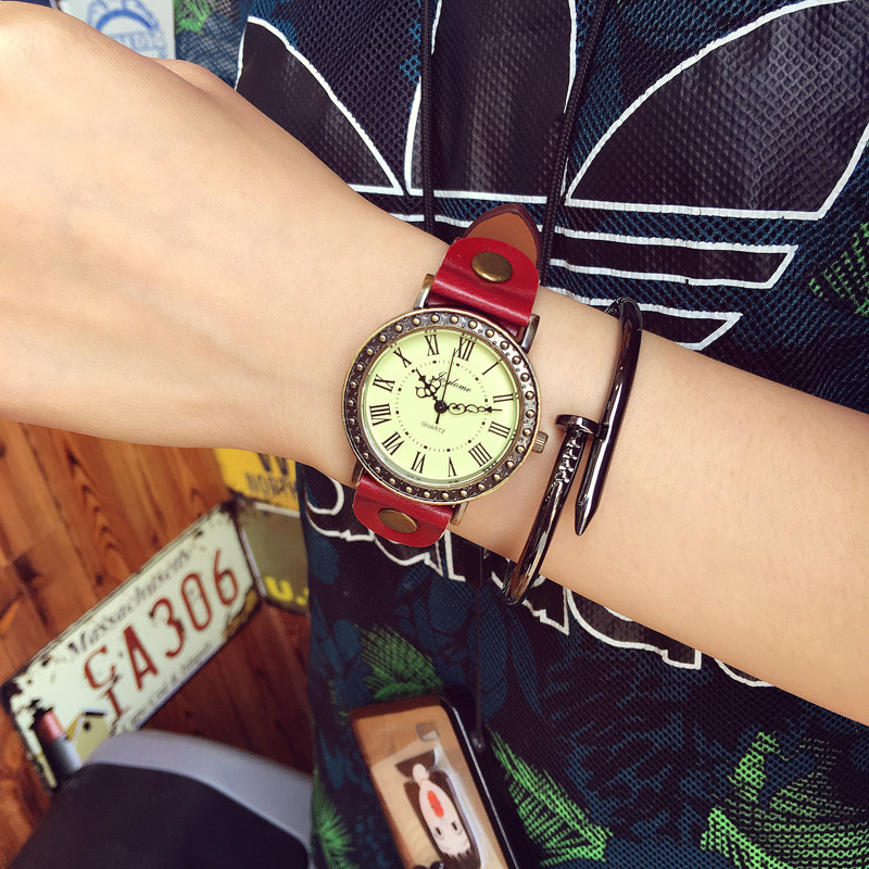羅馬復古手表女中學生簡約休閑手表男表皮帶石英電子女表情侶表