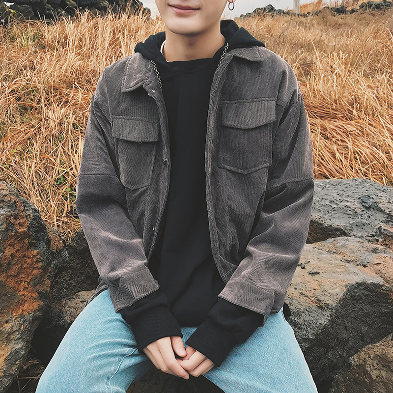 / 男裝新款字母刺繡燈芯絨韓版男士寬松短款夾克外套