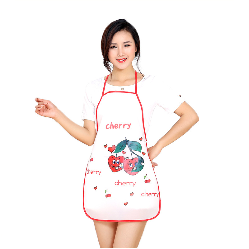 韓版時尚防水圍裙夏季廚房無袖可愛水果印花家用防油污系帶軟圍裙