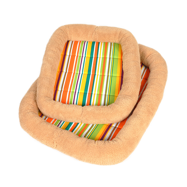 【材質】:土黃舒棉絨+條紋帆布,滴塑牛津布防滑底,墊子不可拆洗