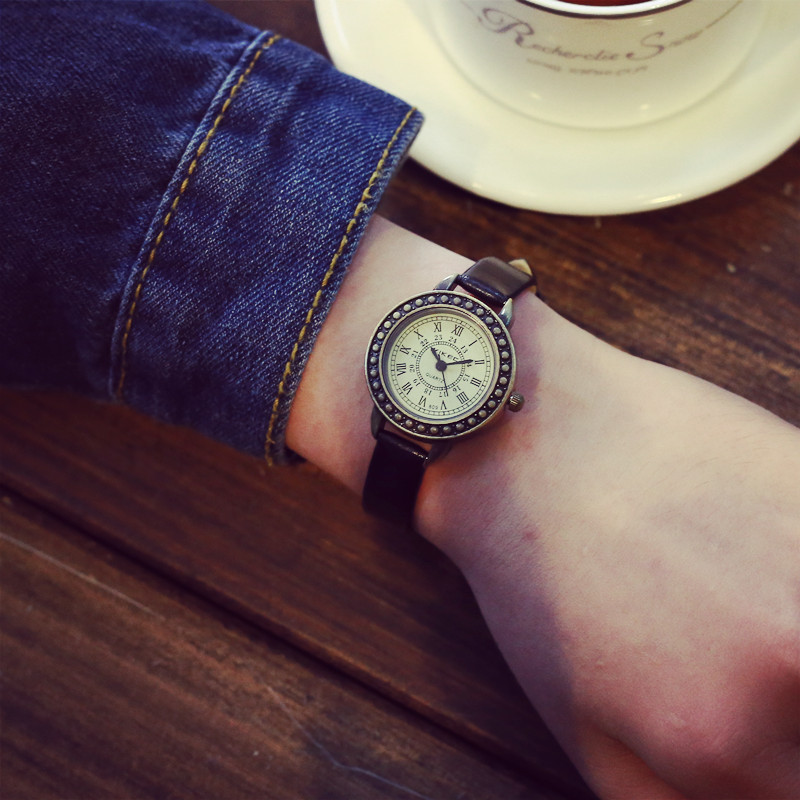 韓國ulzzang原宿手表學生韓版簡約小表盤復古細皮帶迷你女生手表