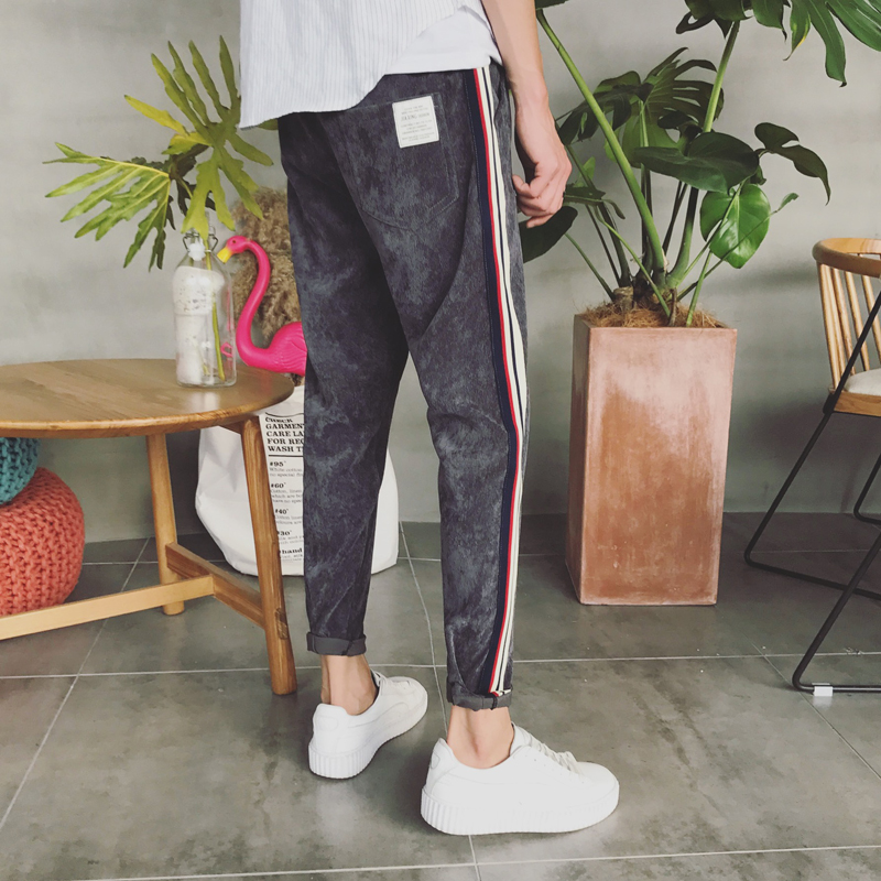 男裝異色鑲邊韓版修身小直腳男士運動褲港風休閑褲