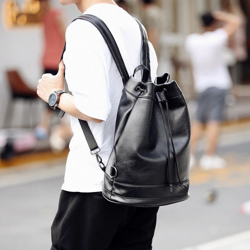新款潮流個性時尚雙肩包韓版皮質學院風中學生書包抽繩背包包