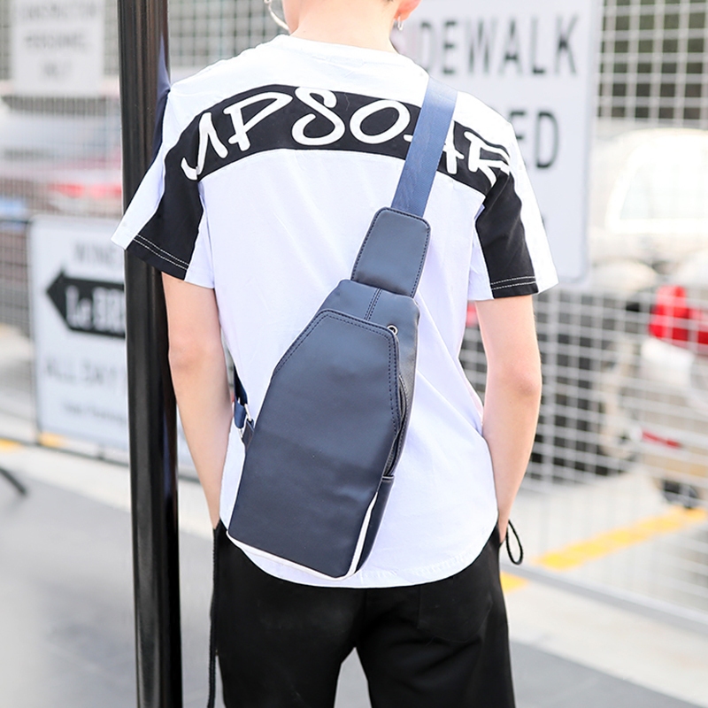 / 韓版新款胸前包潮流皮質學生小胸包單肩包商務運動時尚小背包男包
