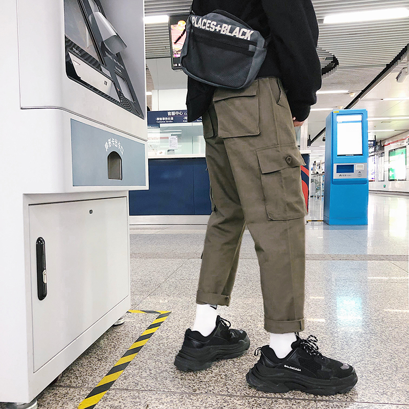 / 文藝男女店直筒工裝褲男士秋季潮流休閑褲新款哈倫男褲韓版九分褲