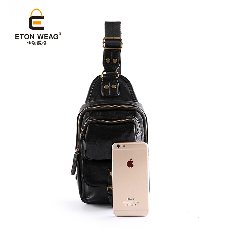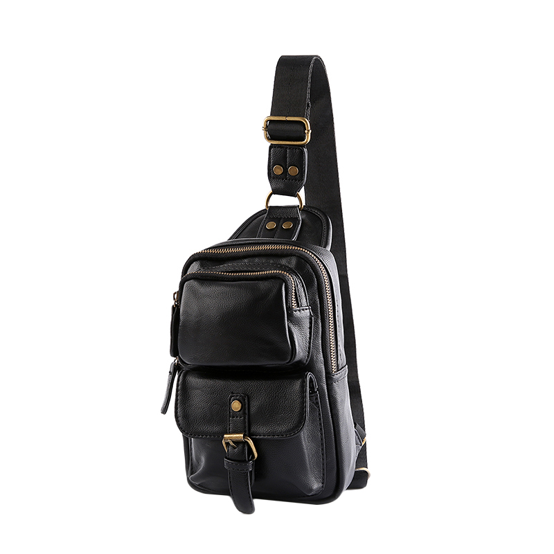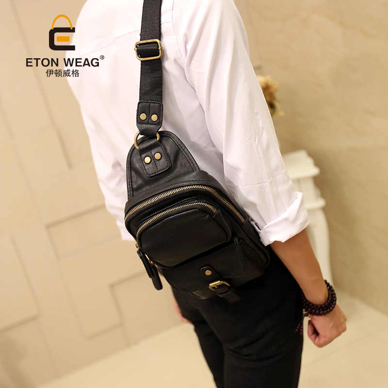 / 原創設計皮質休閑包時尚潮流男士小胸包多口袋小背包韓版男包