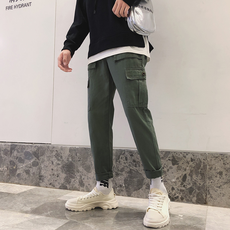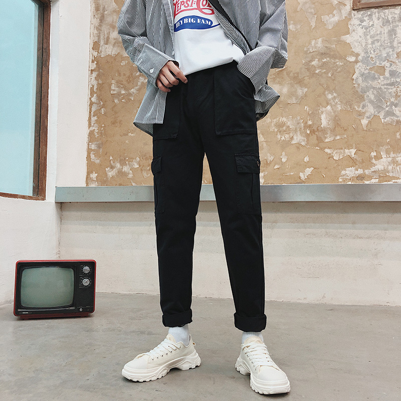 文藝男女店百搭潮牌男士工裝褲秋季潮流寬松九分褲新款韓版休閑褲