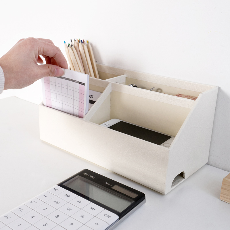 白色荔枝紋收納盒辦公桌面文具手機雜物整理紙質收納架
