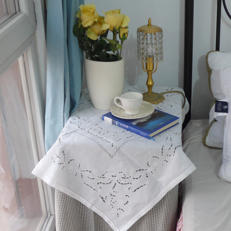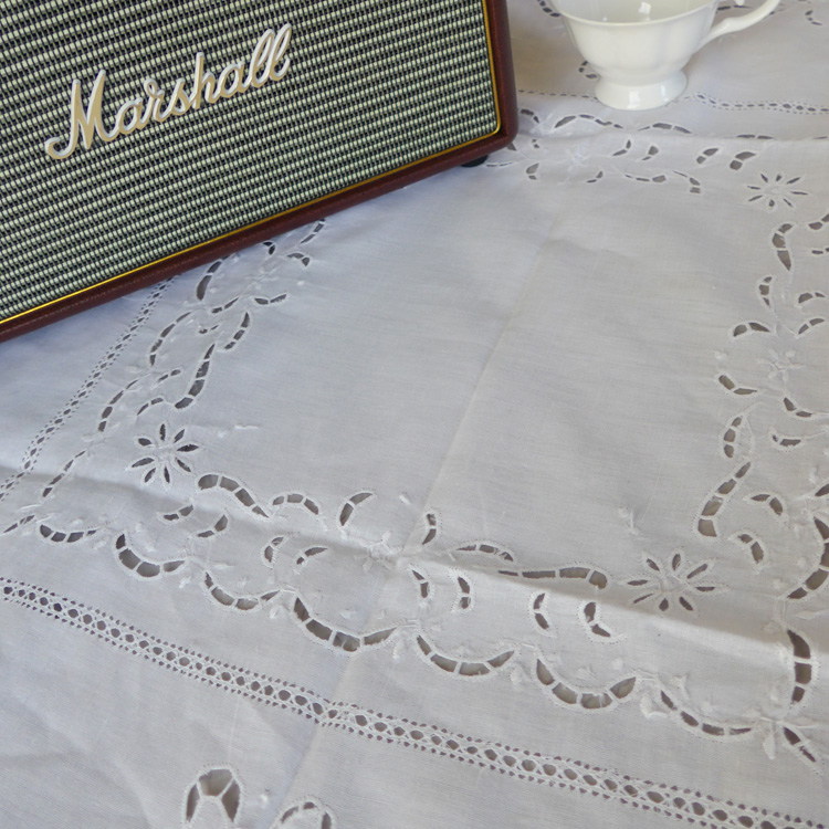 關于她:手工繡制的咖啡色小花,被潔白桌布襯托得分外清新,剔透手工抽絲,更添層次感…無論是餐桌或小幾,每一個細節都如此顯露主人的生活態度……作為底布的仿麻織物順滑柔軟易打理,工藝為傳統手繡加抽絲,中央方形抽絲鏤邊,手工繡花 鎖扣 抽絲 三種工藝,四周包邊嚴謹平順。手工藝品,請允許些微尺寸誤差,另有多尺寸供選,大尺寸花朵會略多且密集些