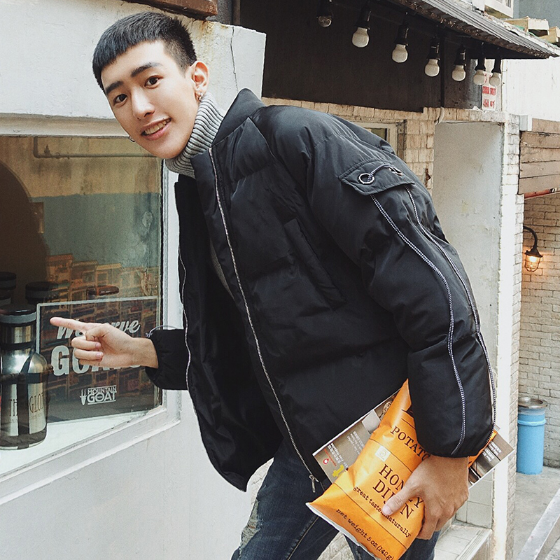 新款冬裝韓版時尚袖繩裝飾男士棒球領加厚短款棉衣