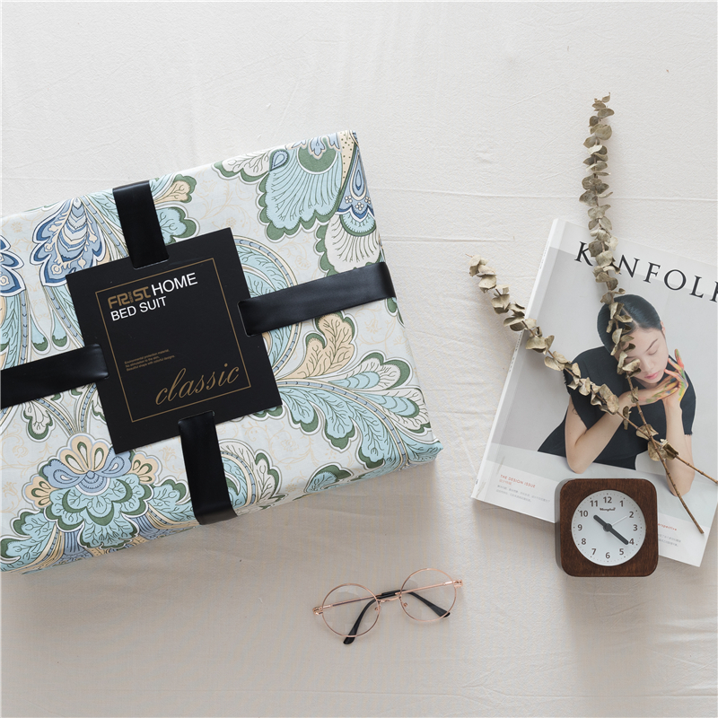 / 冬季上新民族圖騰冷色系60支長絨棉貢緞四件套蓄熱保暖套件