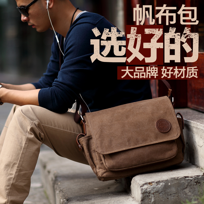 男士單肩包休閑帆布包男包包橫款運動包韓版潮流學生斜挎包