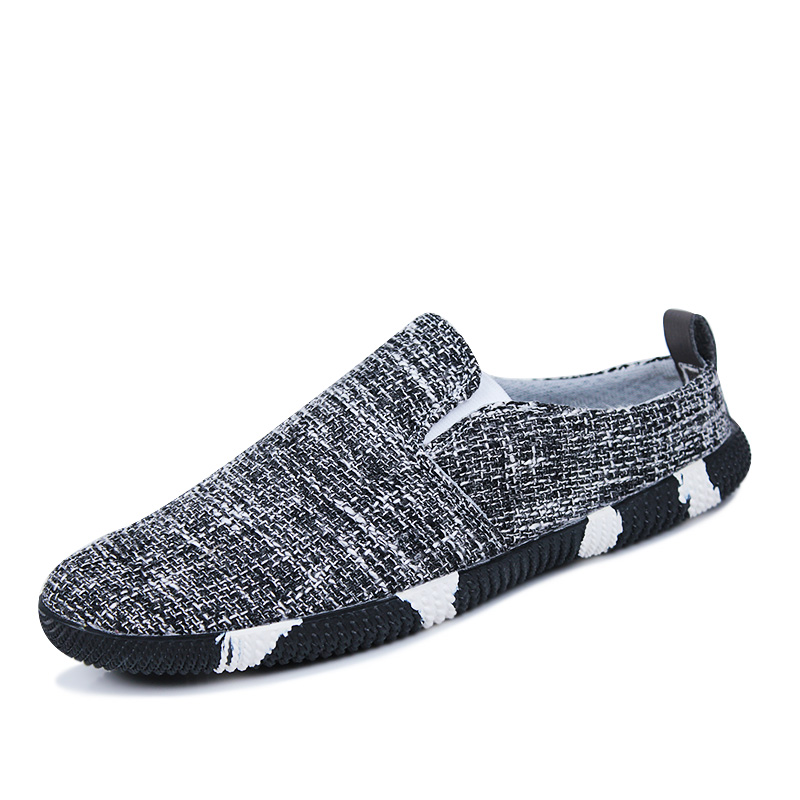 夏季透氣亞麻布鞋韓版潮鞋男士涼鞋包頭半拖鞋休閑豆豆懶人鞋