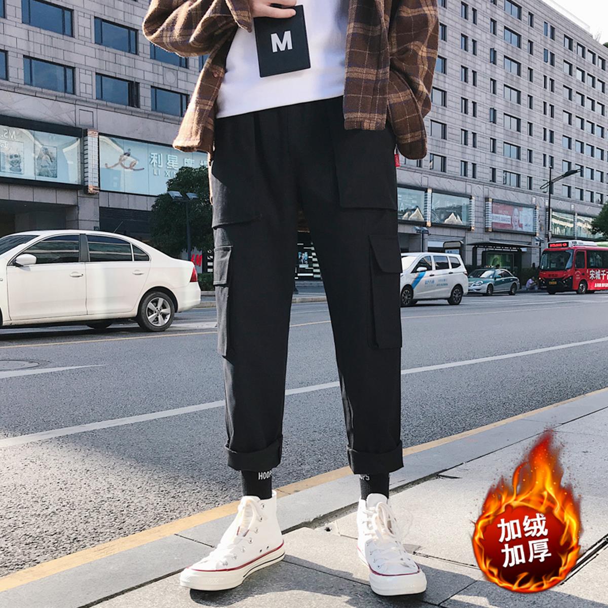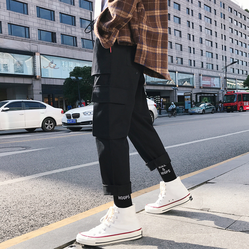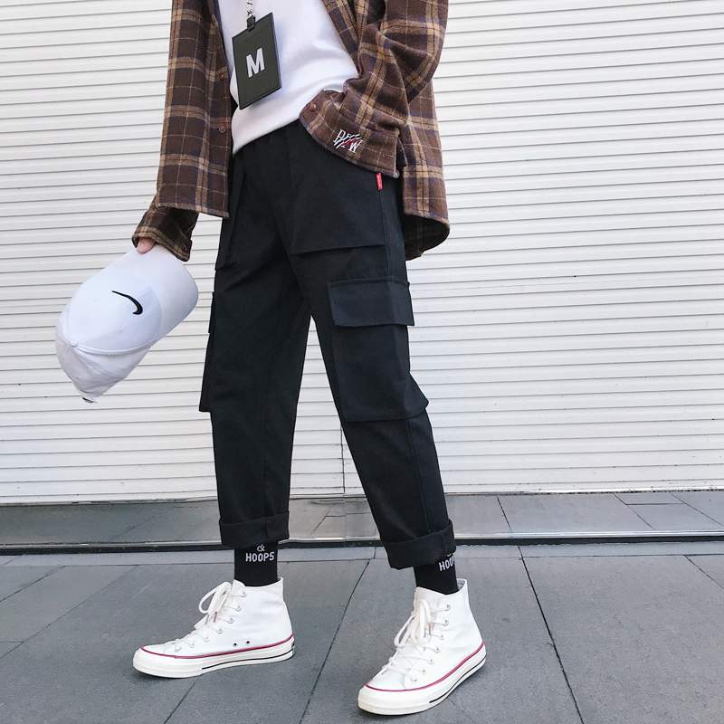 寬松休閑褲秋季九分褲潮流褲子男士社會男褲韓版工裝褲直筒嘻哈褲