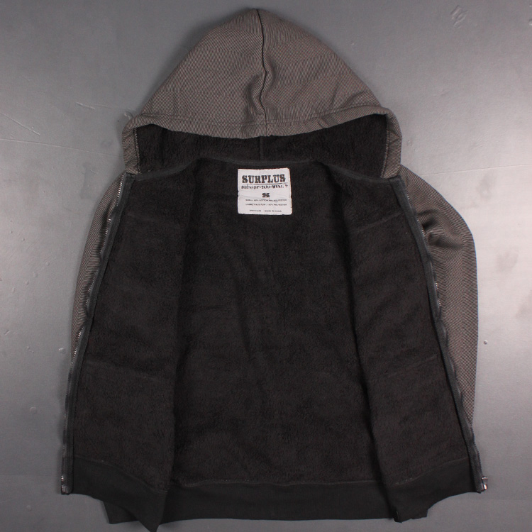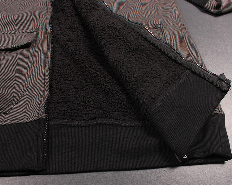 / 四個大口袋 舒適保暖羊羔絨連帽開衫秋冬加絨男款時尚衛衣薄棉衣
