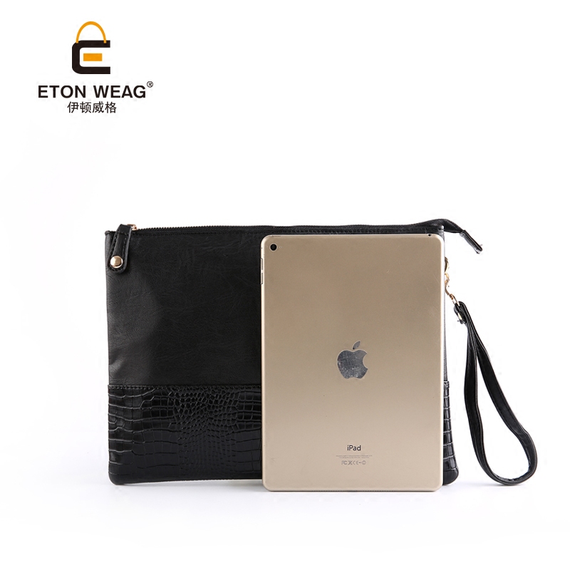 新款韓版復古手拿包鱷魚紋男女士手包ipad手拿包男式單肩包