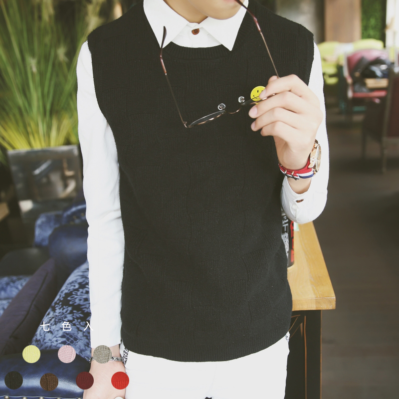 / 男裝卡通笑臉韓版針織衫無袖背心針織衫毛衣馬甲男
