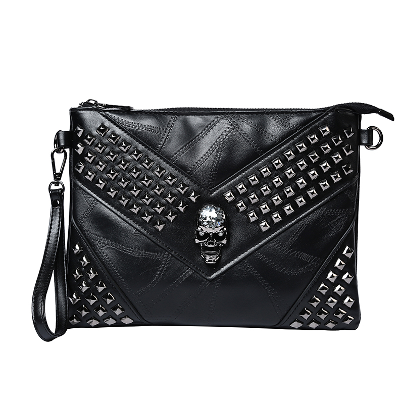 / PU皮手抓包男士手拿包軟皮信封包鬼頭鉚釘手包ipad包單肩斜跨包