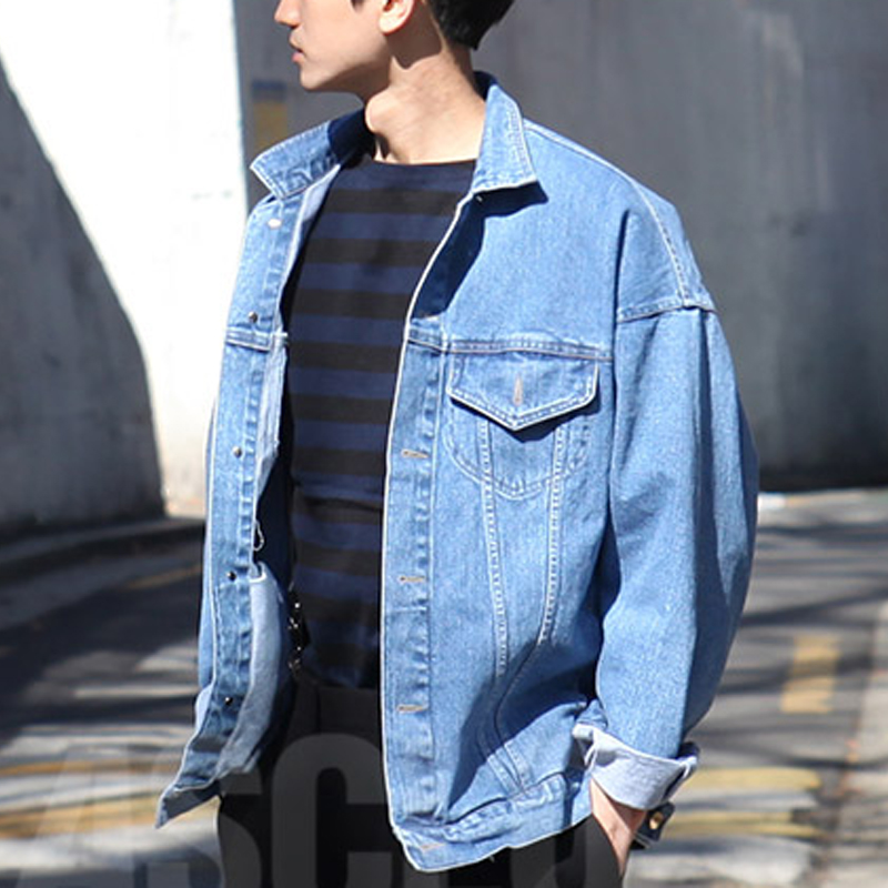 / 新款秋裝男士日系百搭水洗休閑朋克牛仔夾克外套