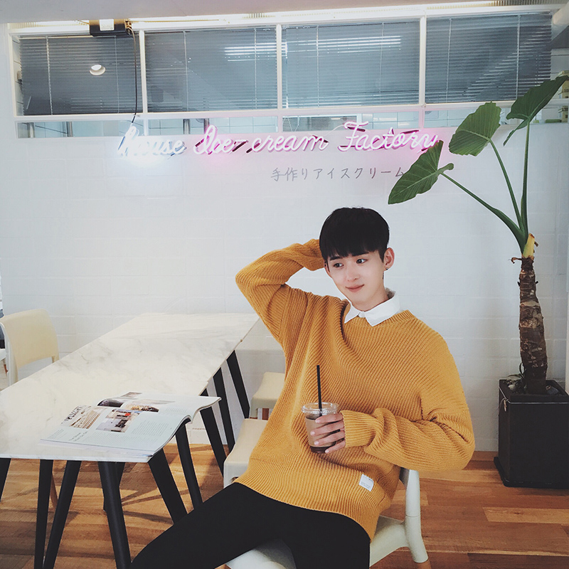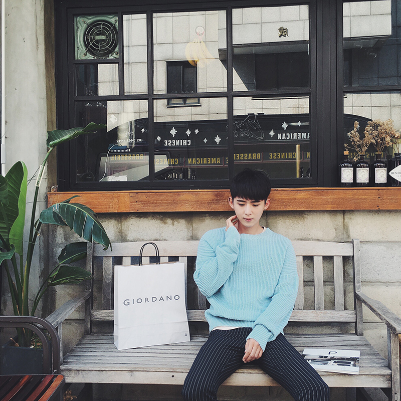 / 秋冬新款韓版簡約多色基礎寬松套頭男士針織衫毛衣