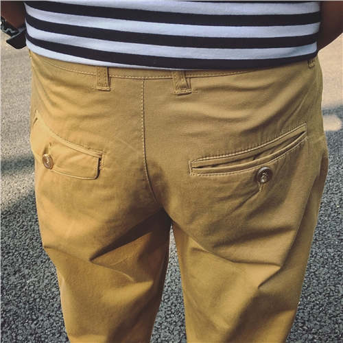 新款日韓純色簡約韓版修身小直腳男士九分褲