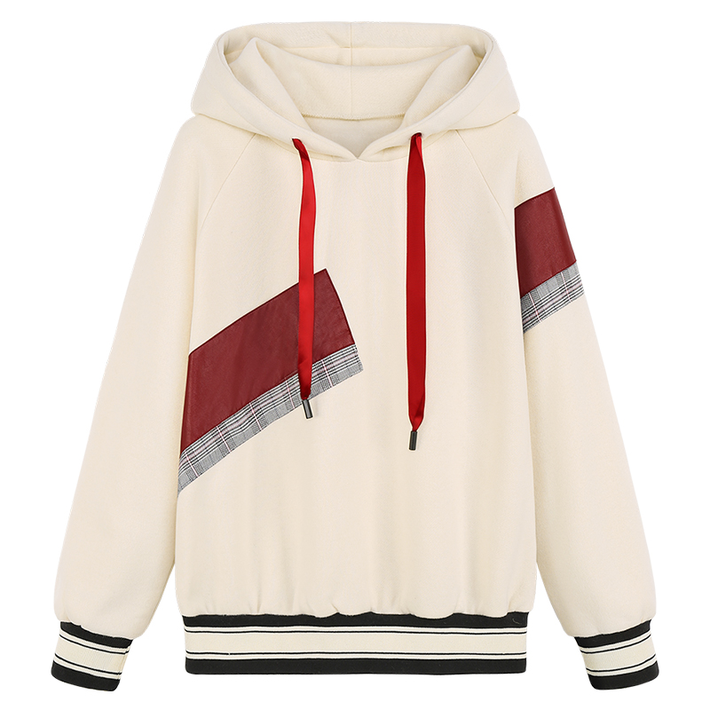 MG小象連帽拼接衛衣女秋時尚寬松2018新款長袖套頭原宿bf風上衣潮