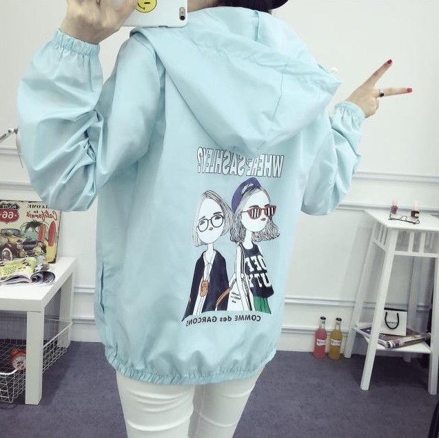 韓國原宿學院風連帽印花字母拼色防曬衣2017夏季情侶款外套男女潮