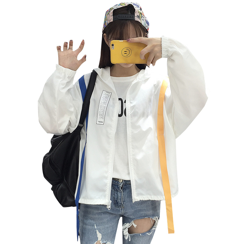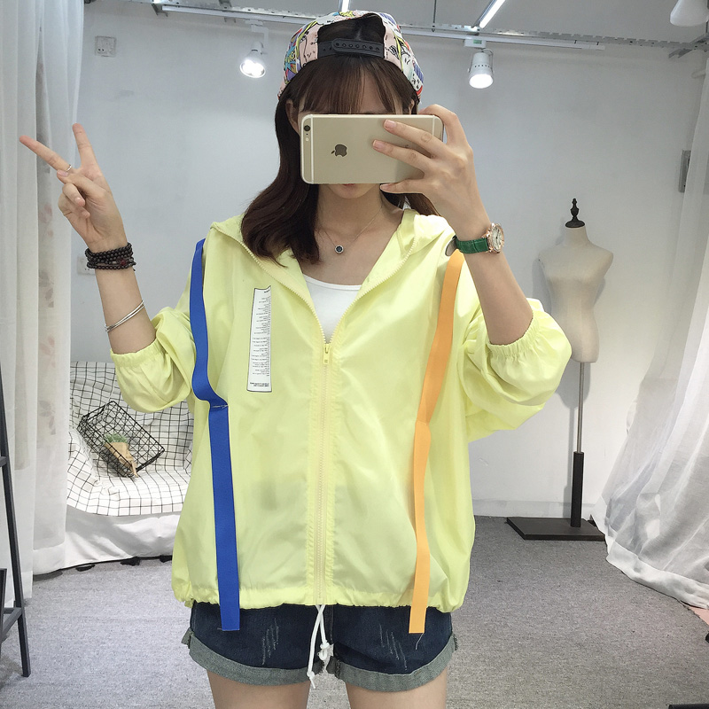 / 防曬衣女2017夏裝新款韓版原宿bf風個性織帶撞色情侶連帽薄款外套