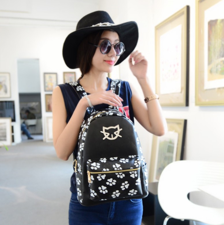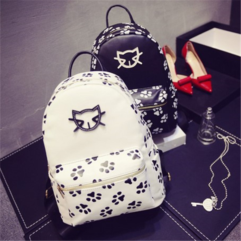 新款女包 時尚萌女貓咪雙肩包腳印雙背包學生包韓版書包女包