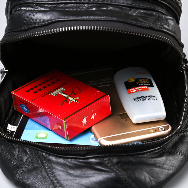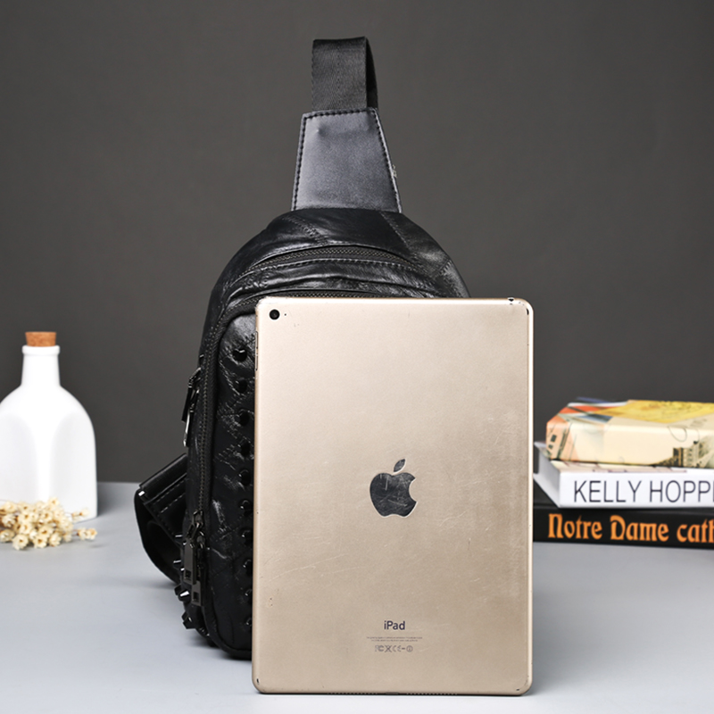 新款拼接軟皮胸包男士胸前包潮流時尚鉚釘胸包單肩斜跨包大容量