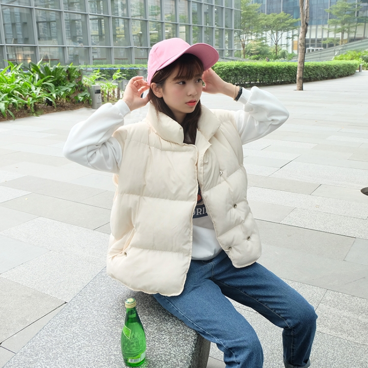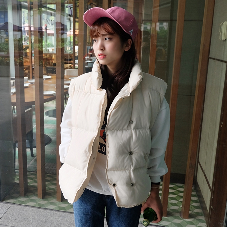 / 秋冬款韓版學院風加厚立領純色面包服無袖馬甲寬松棉衣棉服女