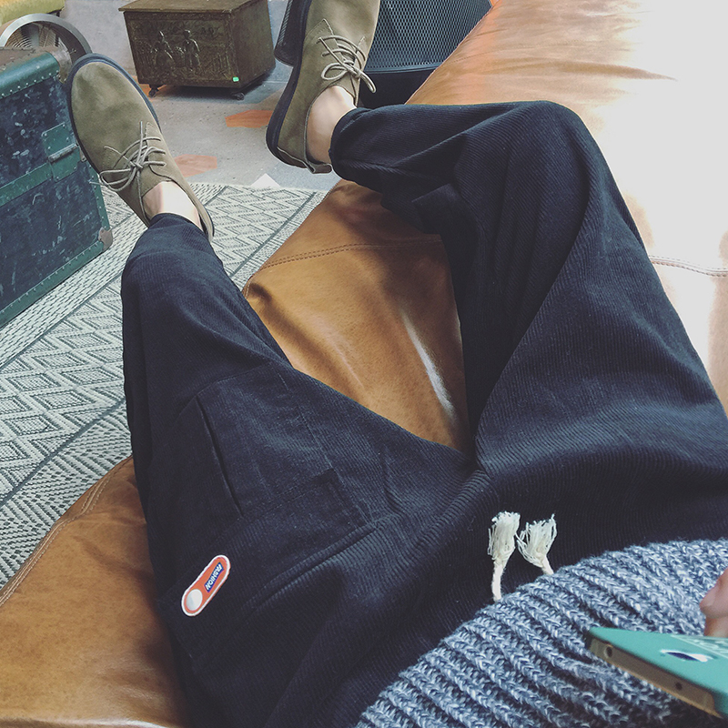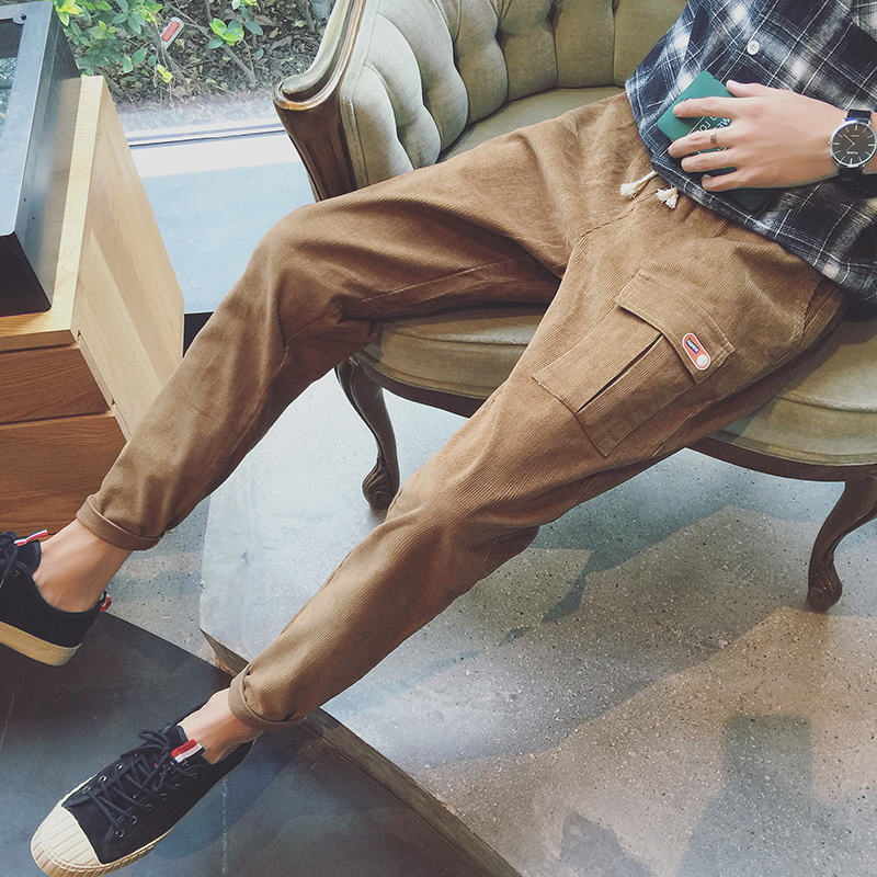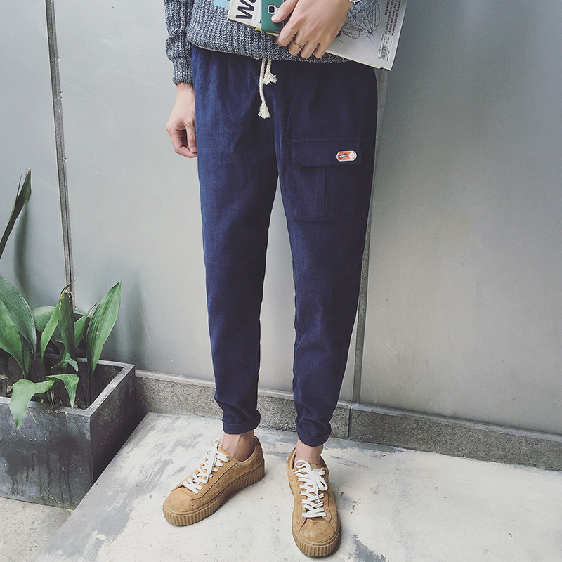 / 男裝貼布韓版修身小直腳燈芯絨男士休閑褲錐形褲潮