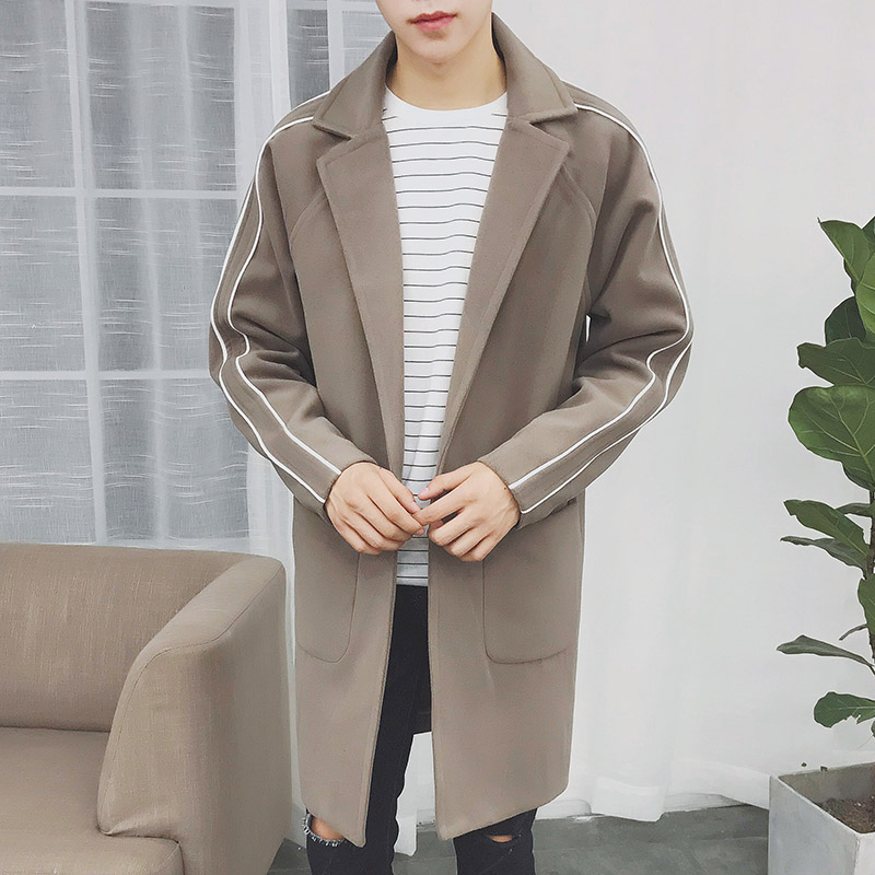 / 男裝韓版原創拼色單排扣呢料外套休閑男士寬松風衣