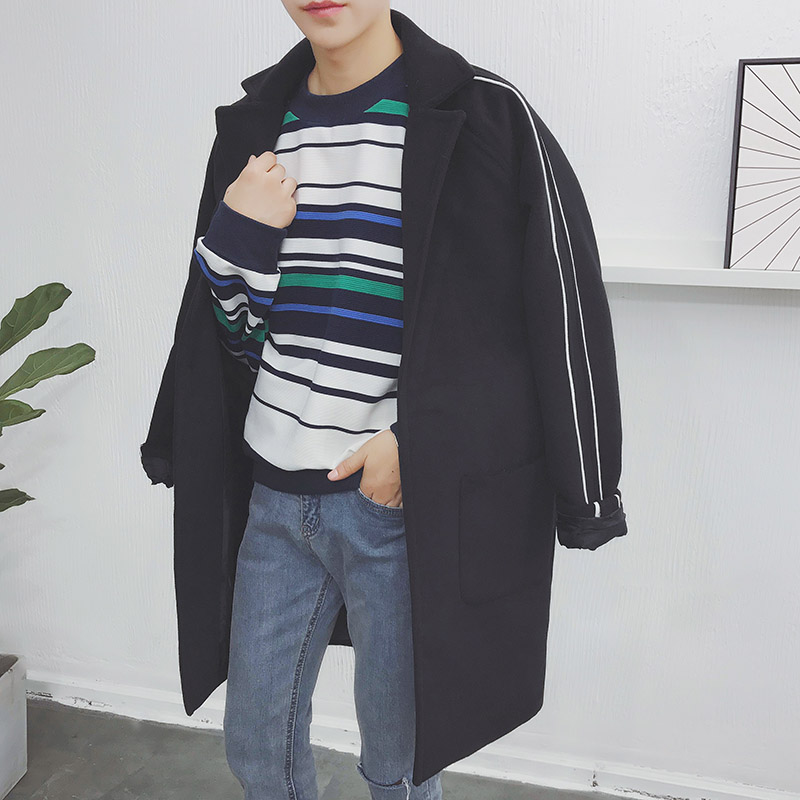 男裝韓版原創拼色單排扣呢料外套休閑男士寬松風衣