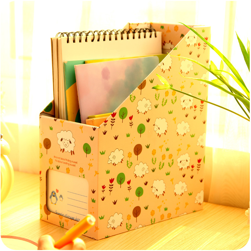 / 精品文具硬紙板DIY桌面收納盒大號創意文件整理盒可愛萌寵文件夾