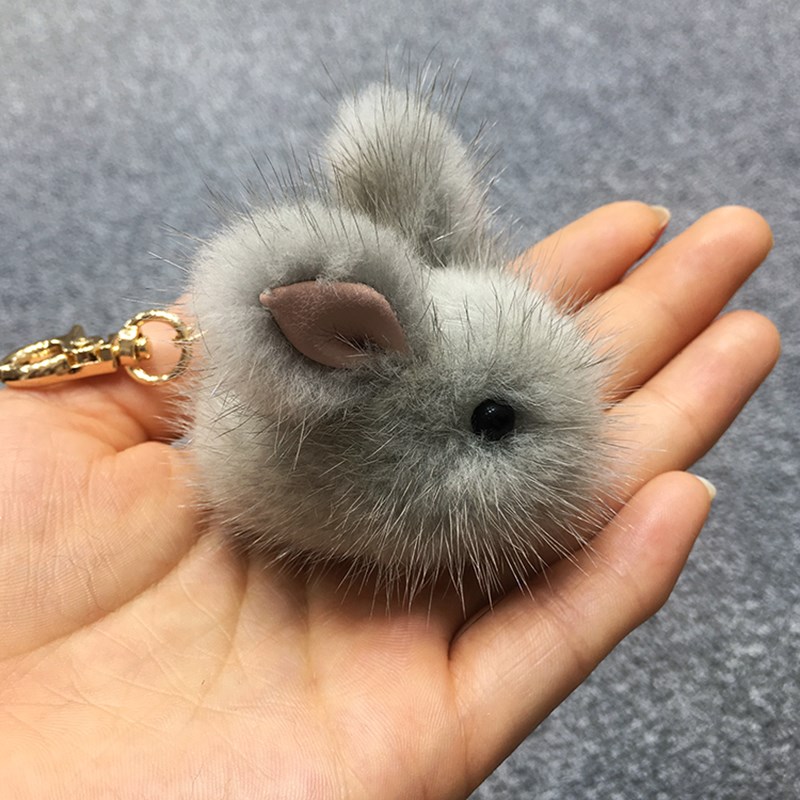 / 超萌水貂毛迷你小玉兔皮草掛件裝死毛絨兔包包手機鑰匙扣兔子飾品
