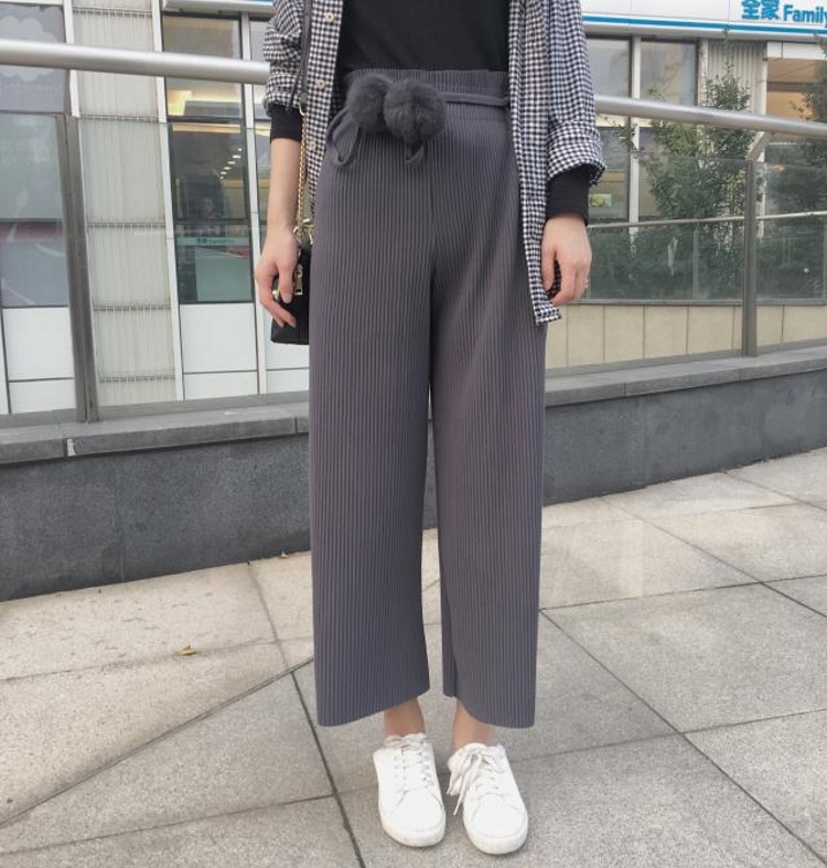 褲型是百褶闊腿褲 顯瘦且一點都不挑人