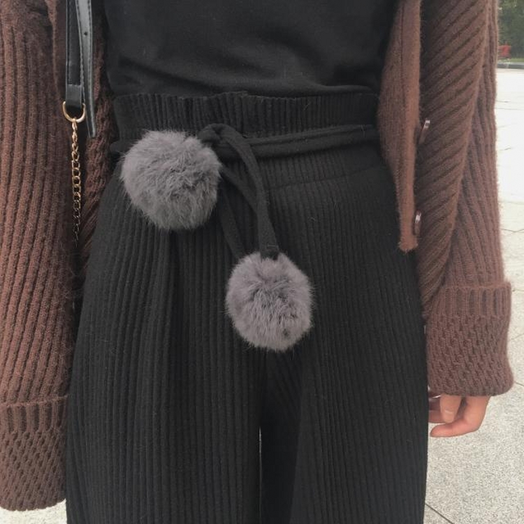 高腰松緊腰,配上球球的腰帶 很chic很隨性