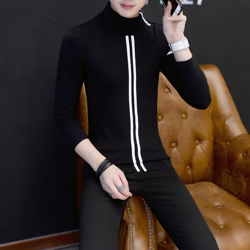 2017新款男士長袖t恤圓領修身打底衫潮流大碼男裝