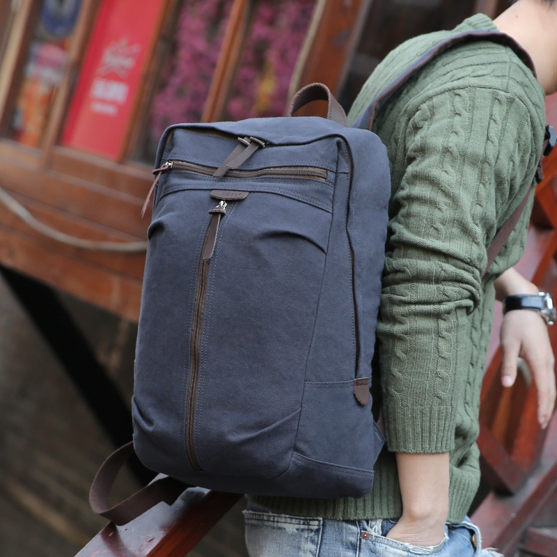 / 男士雙肩包帆布休閑背包學生書包大容量旅行包電腦包