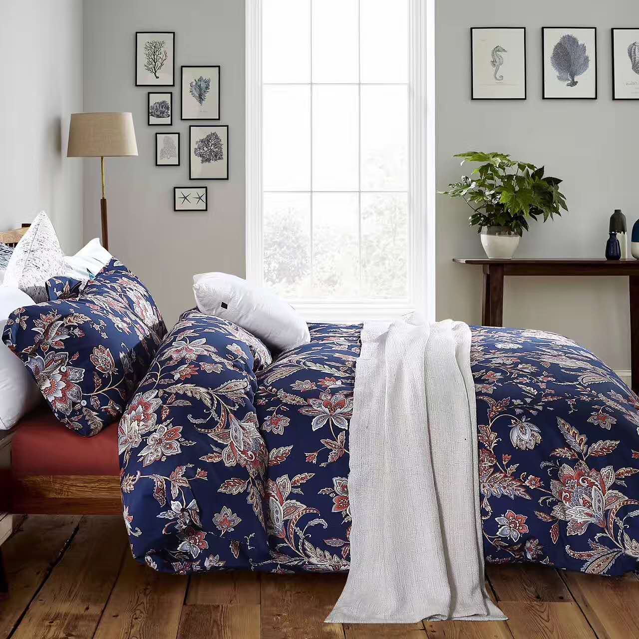 / [白色莫奈]外貿北歐美簡約雙面貢緞植物春夏裸睡花紋四件套