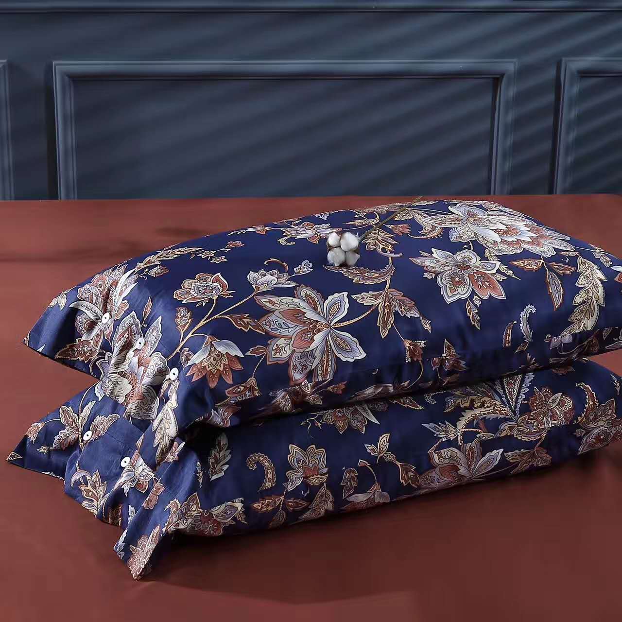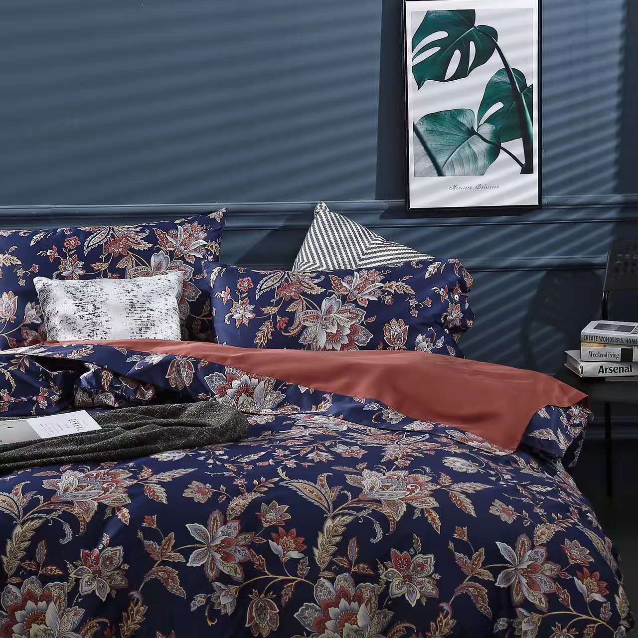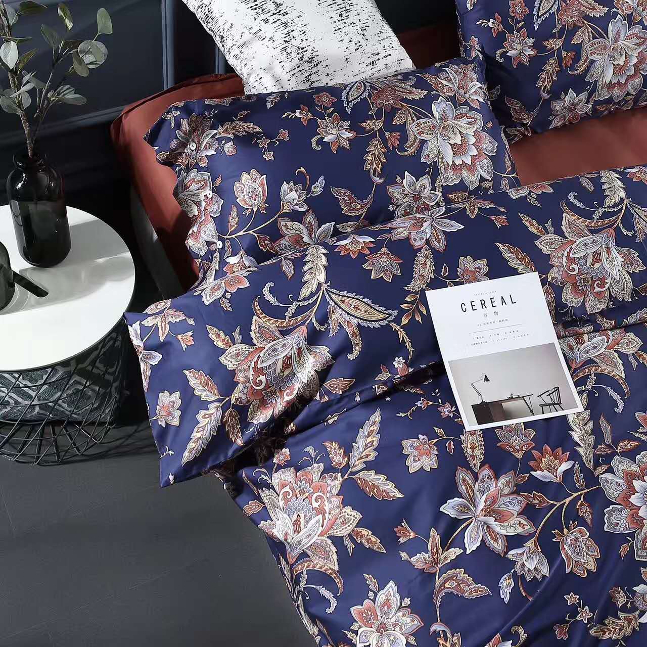 [白色莫奈]外貿北歐美簡約雙面貢緞植物春夏裸睡花紋四件套