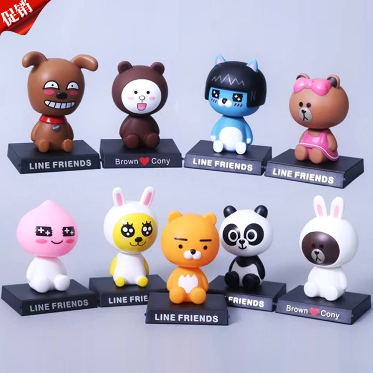 / 車載手機支架汽車內儀表臺多功能可愛手機座卡通搖頭公仔飾品擺件