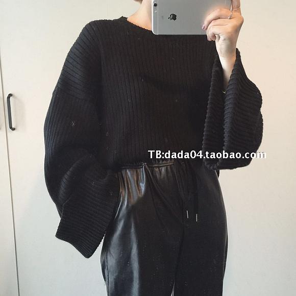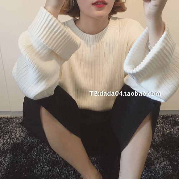 AMJ 秋冬款韓版寬松顯瘦中長款針織毛衣圓領套頭花邊長袖上衣女