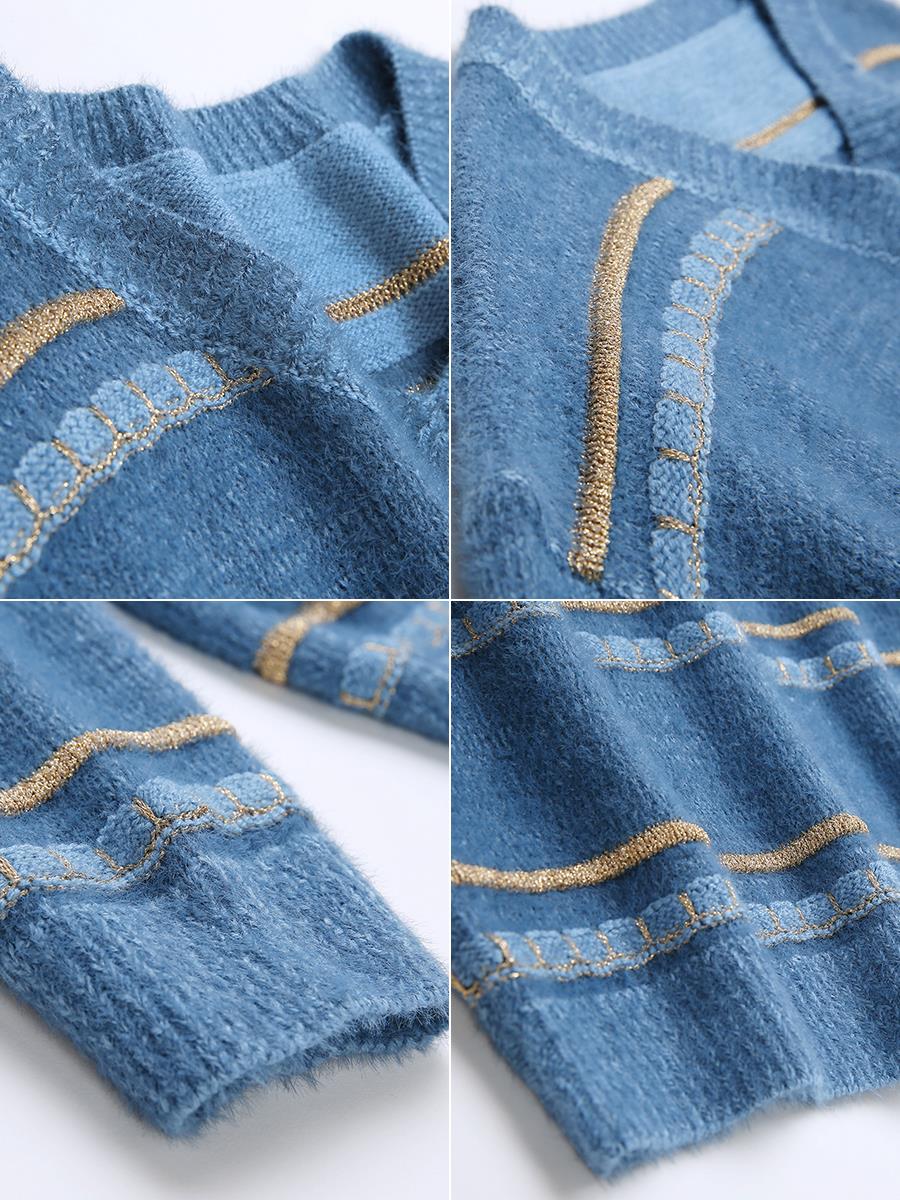 MG小象小清新毛衣女甜美秋冬溫柔風新款套頭寬松V領條紋針織衫潮
