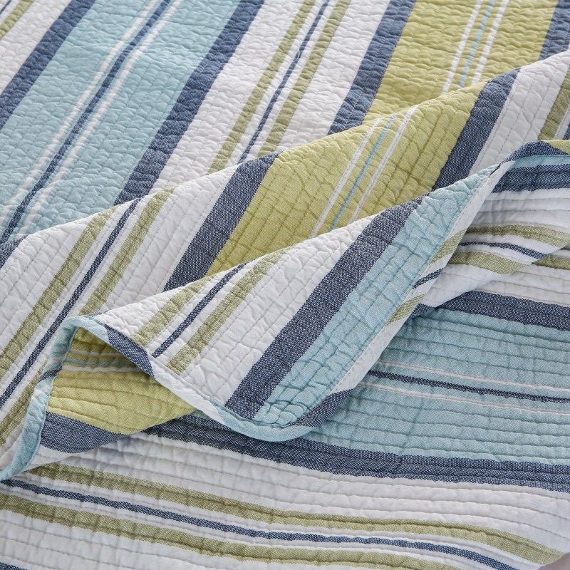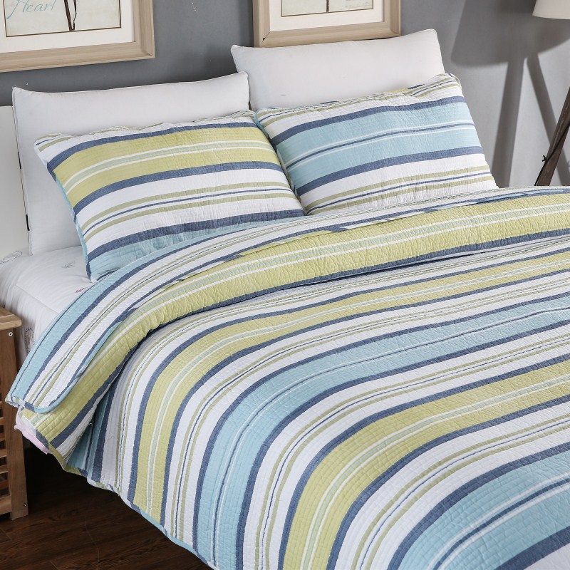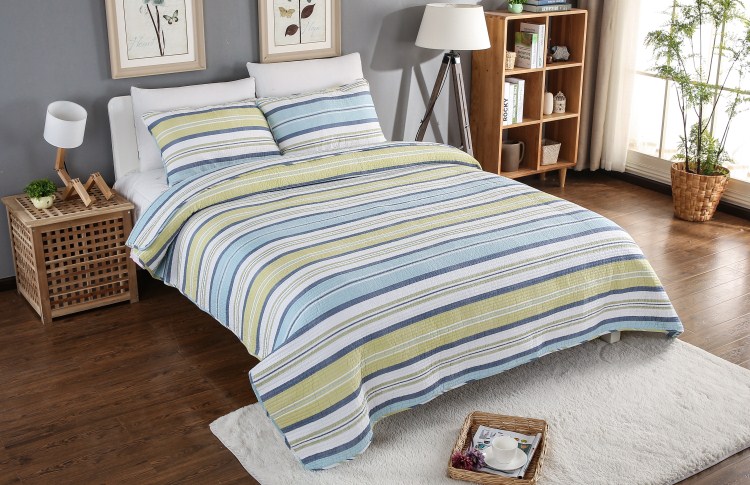 【用法】主要是作為床蓋,即按西式鋪床的方法,被子等整理平鋪好之后,上面再搭床蓋,讓床顯得整潔美觀,可以把整個床罩住,如為單張床蓋,蓋住枕頭時,可再往枕頭下邊稍微往里窩一下;也可以將床蓋折成兩折或三折搭在床的下半部分,亦或是不經意地隨意搭著。因為填充物為水洗棉,外覆亦為棉布,厚度相當于空調被,夏天或春秋天也可以當薄被使用,但一般需要在內里襯一張被單,比較講究的,多選擇有一側花邊的被單,將花邊一側翻露在外面,留二三十公分;這樣也有助于保持清潔。內襯的被單,可選擇小店的美單高支紗一側蕾絲的款式,也可選擇玫瑰花一側盤帶的白色款式,抑或是即邊的款式。