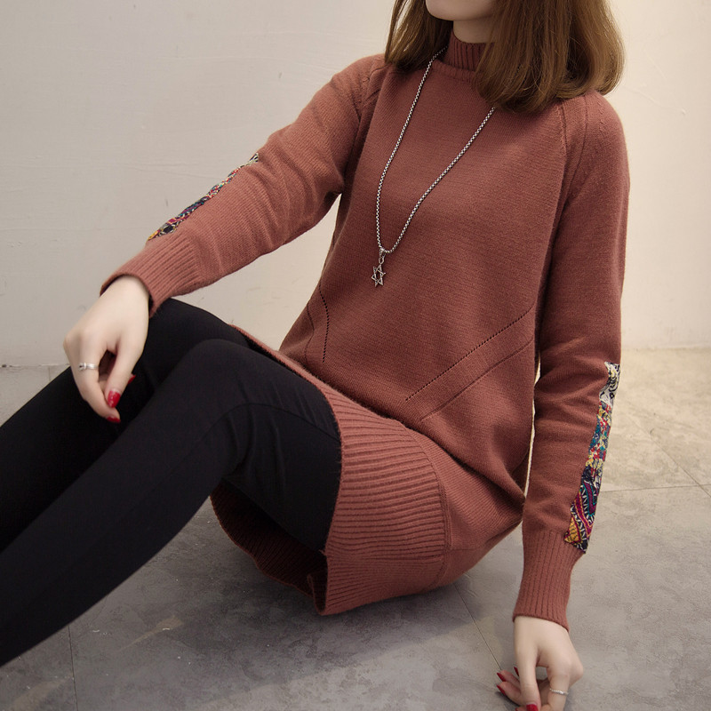 秋冬毛線衣加厚半高領打底針織衫毛衣裙中長款套頭韓版寬松毛衣女